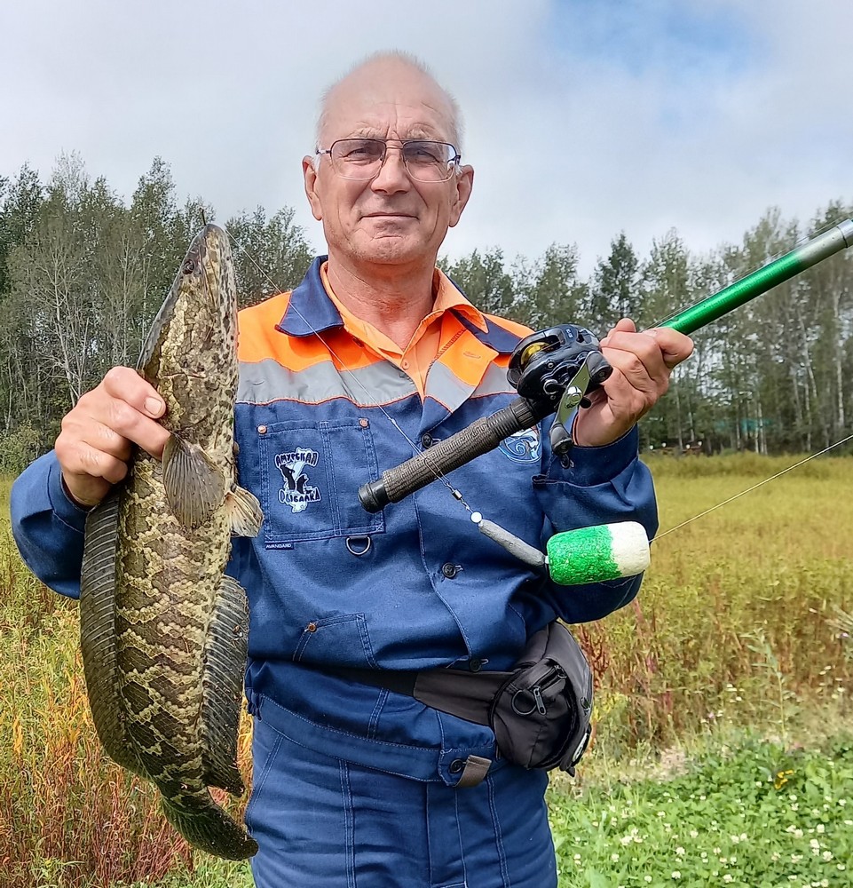 В воскресный день мой товарищ Александр и его зять Максим очень захотели поймать змееголова. Я заготовил червячков для ловли гольянов и провёл консультацию по ловле необычного хищника. Практически повсеместно змееголова ловят на силиконовых лягушат с помощью спиннинга. Но в этом месте он почему-то на них не реагирует. Напрасно рыболовы бороздили приманками ближние и дальние участки водоёма. В конце концов Александр отправился к небольшому заливчику, где на поплавочную оснастку с гольяном выловил своего змееголова.