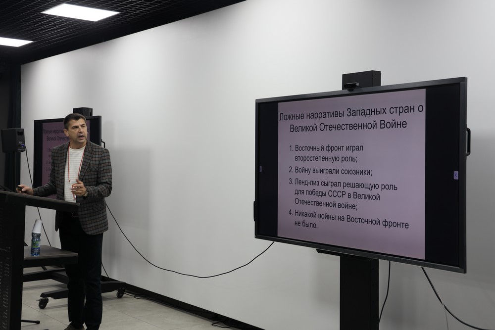 – Сегодня в западном историографическом пространстве происходит развитие фальсификации истории, умаление роли СССР во Второй мировой войне. К примеру, россияне, путешествуя по Европе, часто сталкиваются с тем, что местные жители, бельгийцы, французы, не знают, что немцы воевали на территории России. Американцы, не зная всех символов Второй мировой войны, с флагами милитаристской Японии на футболках спокойно заходят в пагоды Китая. Естественно, китайцы рассматривают это как унижение и оскорбление. Более того, в среде западных обывателей возникают разговоры, что не было ни войны, ни преступлений гитлеровцев и японского милитаризма. Японцы, например, до сих пор отказываются от признания существования программы «женщин для утех». Это важный момент, который показывает, как формируется ложное представление о войне.
