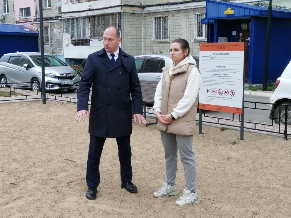 7 октября глава Комсомольска Дмитрий Заплутаев посетил двор дома № 35 по улице Гамарника, чтобы познакомиться с ТОС «Ёлочки», одним из проектов территориальных общественных самоуправлений, реализованных в этом году на краевые гранты.