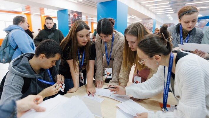 После презентации для студентов организовали интерактивную игру. Их разделили на восемь команд и предложили пройти тематические станции, посвящённые добыче и переработке руды. Задания требовали не только знаний, но и творческого подхода: например, без слов изобразить представителей разных профессий компании – геологов, плавильщиков, электриков, сварщиков и других. Особое внимание уделили развитию коммуникативных навыков: студенты приводили аргументы в пользу вахтовой работы и учились договариваться друг с другом в смоделированной рабочей ситуации: нужно было за короткое время определиться, в каких кабинетах кто будет работать.