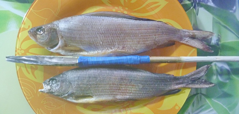 Полезная самоделка и техсовет. Из веточки вербы делаем палочку длиной 25 см. Из белой жести вырезаем заготовку, сгибаем её в лоточек и крепим с помощью изоляционной ленты на палочку. Насыпаем соль в плоскую чашку, подхватываем соль лоточком и засыпаем в горловину хариуса, как можно дальше. Теперь другим концом проталкиваем соль внутрь рыбы. Присыпаем рыбу тонким слоем соли с двух сторон, по щепоточке соли направляем в жабры. Укладываем хариусов на сутки в прохладное место. Промываем бока туловища рыб, не трогая голов, и вялим. Такой хариус является наиболее вкусной рыбой из всех дальневосточных.