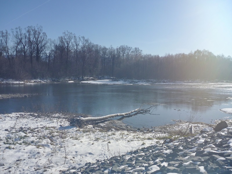 Затем подъехал ещё один автомобиль, и двое рыболовов поспешили перейти протоку и направились на основное русло. После обеда льдинок не стало. Эх! Какой простор для активного ужения!