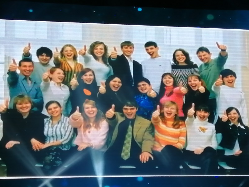 Юбилейный вечер открыли песней, слова которой написала выпускница 2003 года Юлия Мельничук.