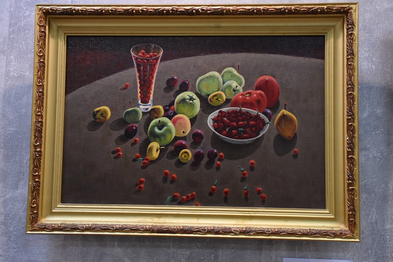– Помню, как поставил холст и сказал, что сейчас напишу на нём корзину с грибами, – вспоминает художник. – Изобразил их и лежащими поблизости. Как и с портретом, натюрморт должен быть мне интересен. Помню ранние картины в этом жанре. Одна из них – натюрморт с яблоками, который можно увидеть на моей персональной выставке. Тогда я жил в общежитии на Комсомольской улице. Купил на рынке разных фруктов и принёс их домой в корзине. Там были не только яблоки, но и бананы, ананасы. Раскладывал фрукты в трёх местах, чтобы подобрать лучший ракурс для натюрморта. Чтобы яблоки лежали естественно, несколько раз высыпал их из корзины. Когда я представил эту картину на выставке, известный в городе художник Евгений Короленко назвал её моей знаковой работой. Позже он вместе с Виктором Лановенко предложил мне вступить в Союз художников.