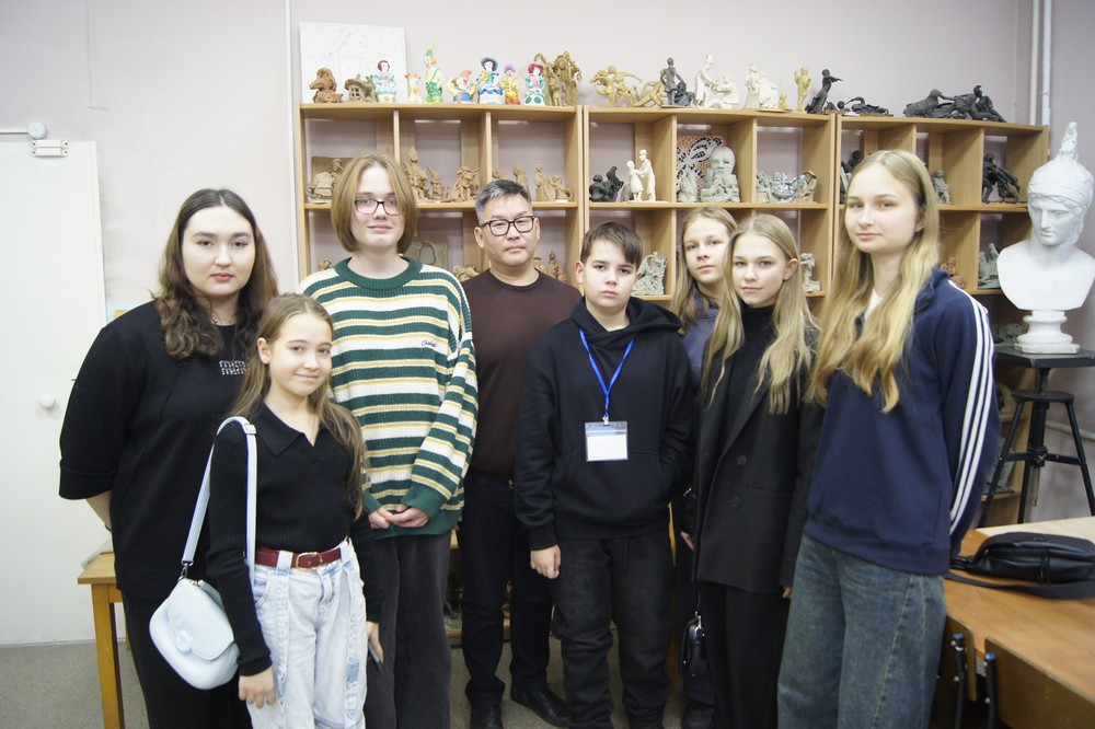 Преподаватель скульптуры Денис Михайлович САМАР внимательно направлял и поддерживал каждую ученицу: он лично принимает работу каждой подопечной, подсказывает мелкие приёмы и следит за деталями. Нам наконец‑то посчастливилось познакомиться с ним лично и побеседовать в преддверии его персональной выставки, которая откроется в декабре в городском Музее изобразительных искусств. На ней можно будет увидеть его крупные работы – панно и картины, где традиции Приамурья встречаются с современным взглядом.