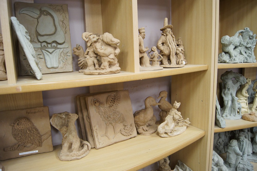 Урок уже подходил к концу: в хорошо освещённой студии группа девушек вносила последние штрихи в натюрморты, они лепили скульптуры из глины. На высоких станках с вращающимися досками работы – от теннисной ракетки и боксёрской перчатки до фруктов и кувшинов. Девушки ловко перебирали глиняные шарики, придавая им новые очертания, аккуратно вырезая детали маленькими ножами – стеками. Всё это было так увлекательно, что можно было наблюдать бесконечно.