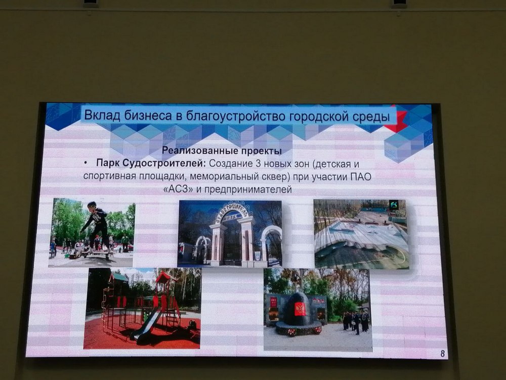 Бизнес-сообщество ранее активно приняло участие в таких проектах, как памятник Рабочему-металлургу на площади Металлургов, создание мемориального сквера, детской и спортивной площадок в парке «Судостроитель», сквера у стелы «Город трудовой доблести», спортивных площадок спортивного центра «Орлан», школы №27, парка «Судостроитель» имени В.П Костенко, реконструкции памятника лётчикам самолёта «Родина», возведении собора Святой Матрёны.