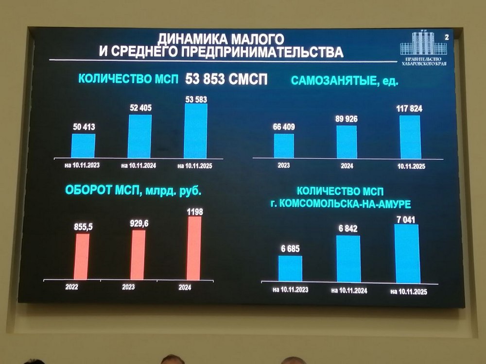 В докладе от администрации города было, в частности, сказано, что Комсомольск-на-Амуре демонстрирует устойчивую и положительную динамику в социально-экономическом развитии, в том числе и в сфере предпринимательства.