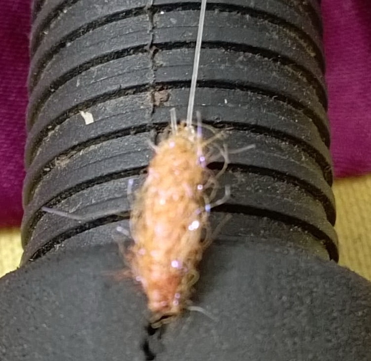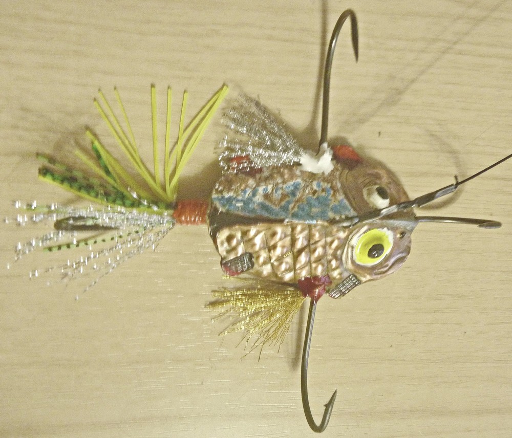 Мастер-класс. На днях я изготовил две новые «бойкие» верховые приманки. Для первой взял за основу оранжевую губку для мытья посуды. Можно использовать жёлтые, зеленоватые, лаймовые и фиолетовые цвета губок. Закрепил её отрезок у колечка крючка чёрной нитью и добавил лапки и усики из пера птицы. Лёгкую блестящую головку для второй приманки изготовил следующим образом. Сначала на крючок продел блестящую фольгу до колечка, затем тонкий кембрик длиной 2 мм. После обернул кембрик фольгой и закрепил нитью лаймового цвета. Затем добавил усики из люрекса и лапки из пера птицы. Пробуем, ловим и радуемся удаче!