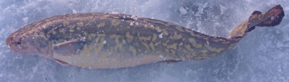 Заглянул в глубину лунки и увидел дрыгающееся древко. Сбросил рукавицу да нырк рукой в воду: есть! Через минуту на льду заелозил налим с блесной во рту.