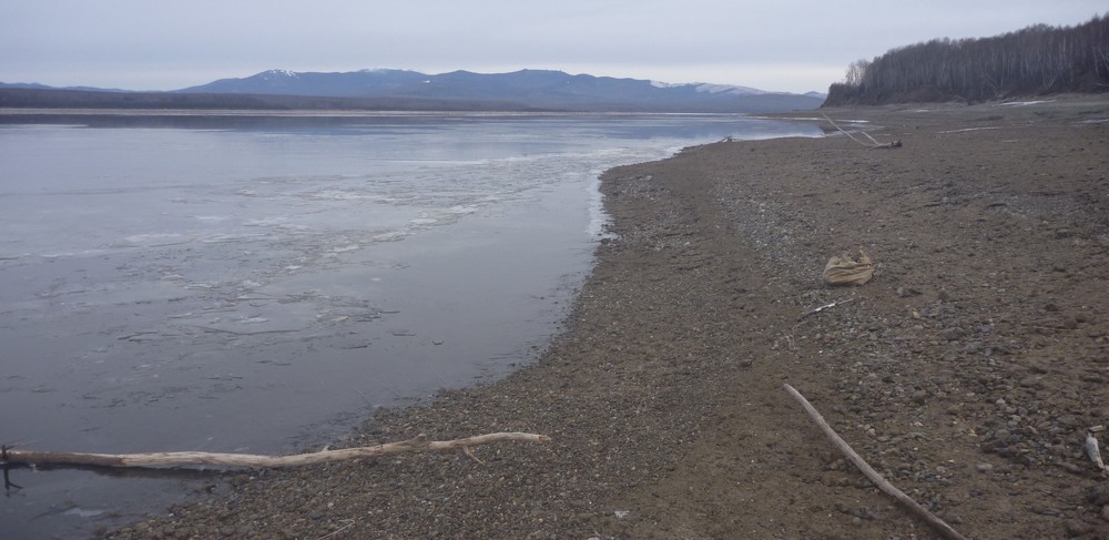 Утренний Амур у выхода горной реки встретил нас лёгким морозцем и беспечно плывущими тонкими льдинками-стекляшками.