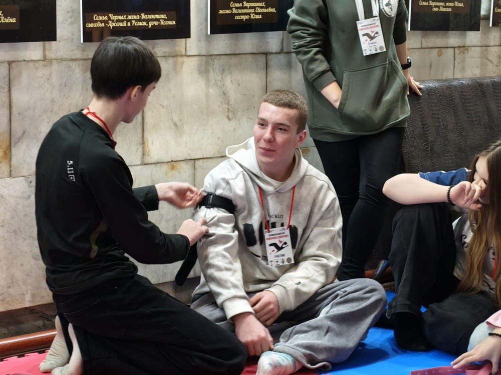 После завершения беседы участники слёта разделились на команды и участвовали в мастер-классах по стрельбе из пневматической винтовки, тактической медицине и каллиграфии от поискового отряда «Русичи» из Хабаровска, работающего на базе детско-юношеского центра «Восхождение».