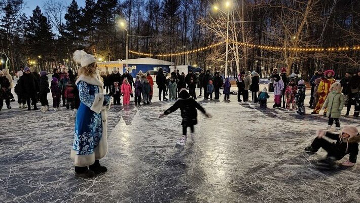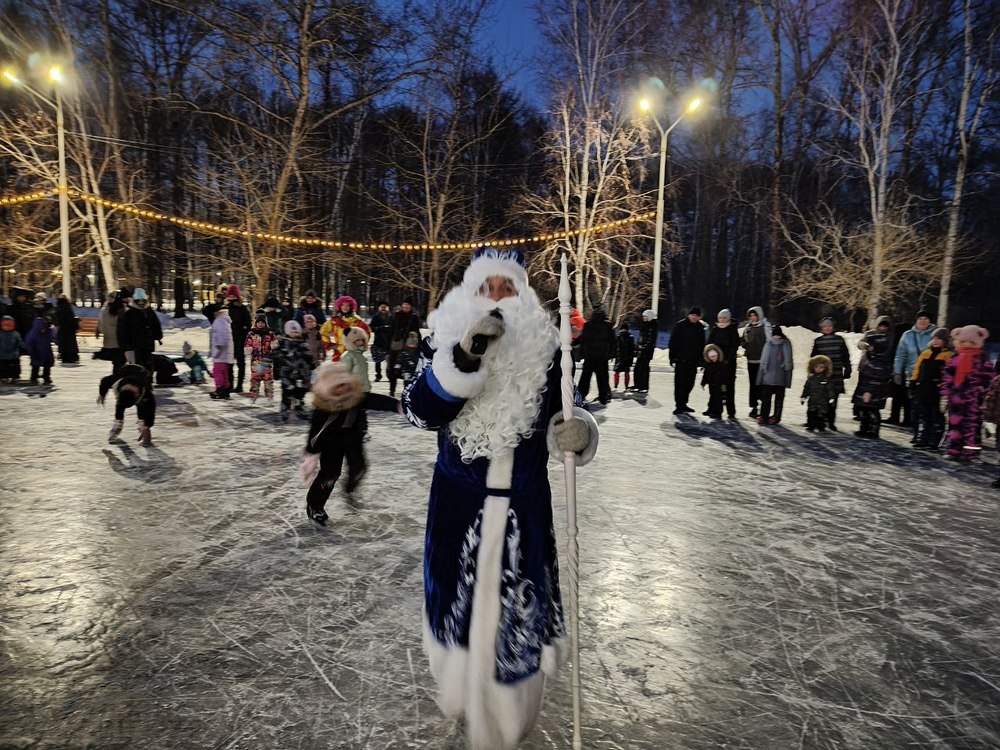 В парке имени Гагарина открылся каток. Разместился он, как и в прошлом году, на территории, расположенной у сценической площадки. В церемонии открытия приняли участие Дед Мороз и Снегурочка. Сказочные персонажи водили хороводы, пели и танцевали, а в конце даже порадовали подарочками самых маленьких посетителей праздника.
