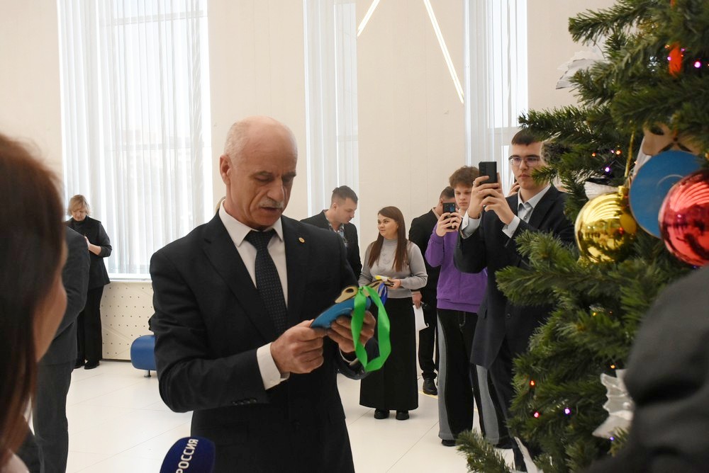 На ёлке, установленной в фойе второго этажа, висели 10 шариков-открыток с детскими мечтами. Когда их разобрали по рукам и озвучили, выяснилось, что желания у ребят довольно интересные. Девятиклассник Артём, например, хотел своими глазами увидеть, как варят сталь, и гендиректор металлургического предприятия Александр Ильин обещал сводить его в цех, обрядив в сталеварскую робу согласно технике безопасности.