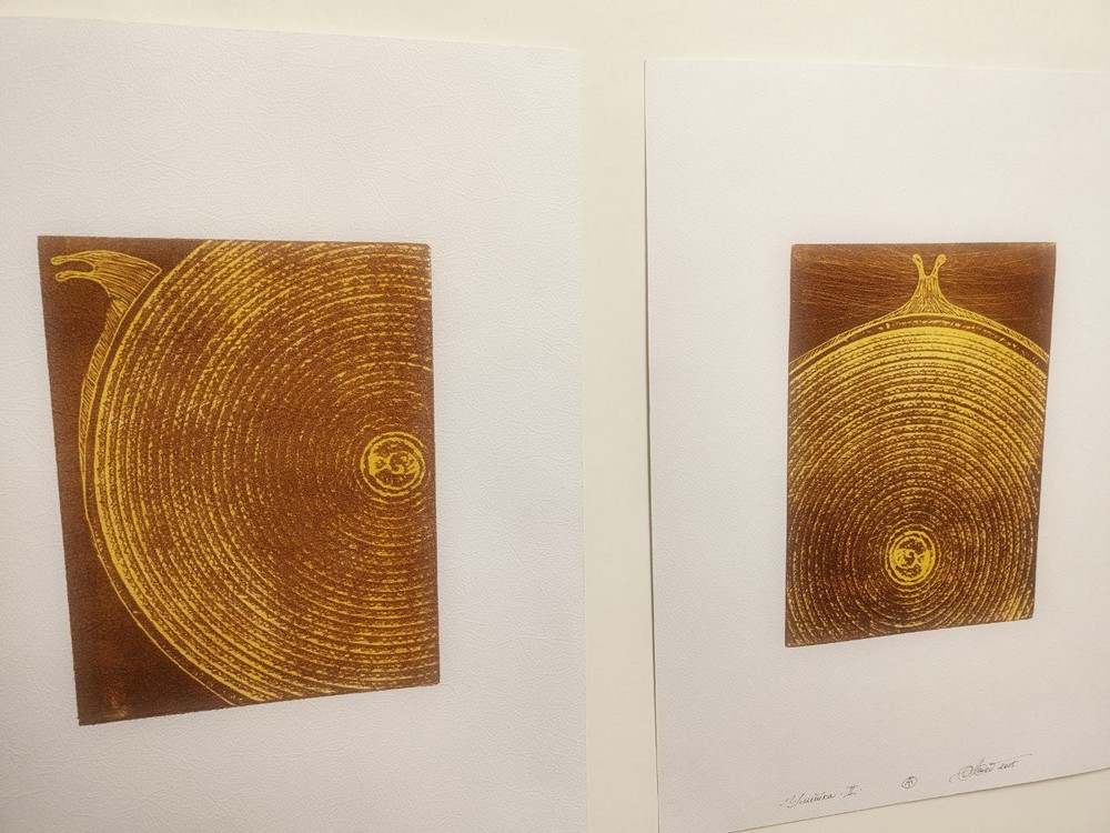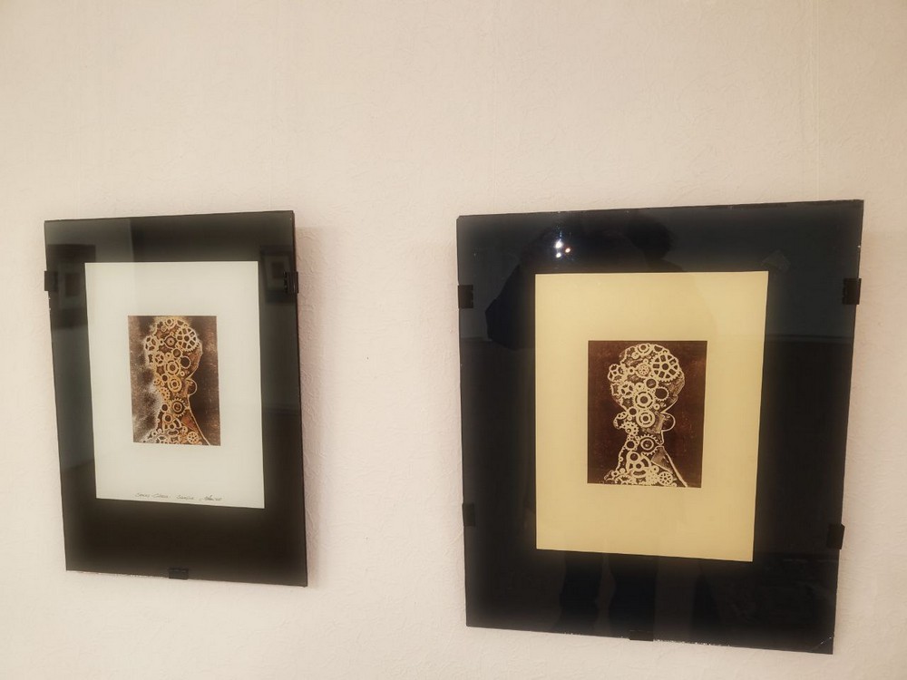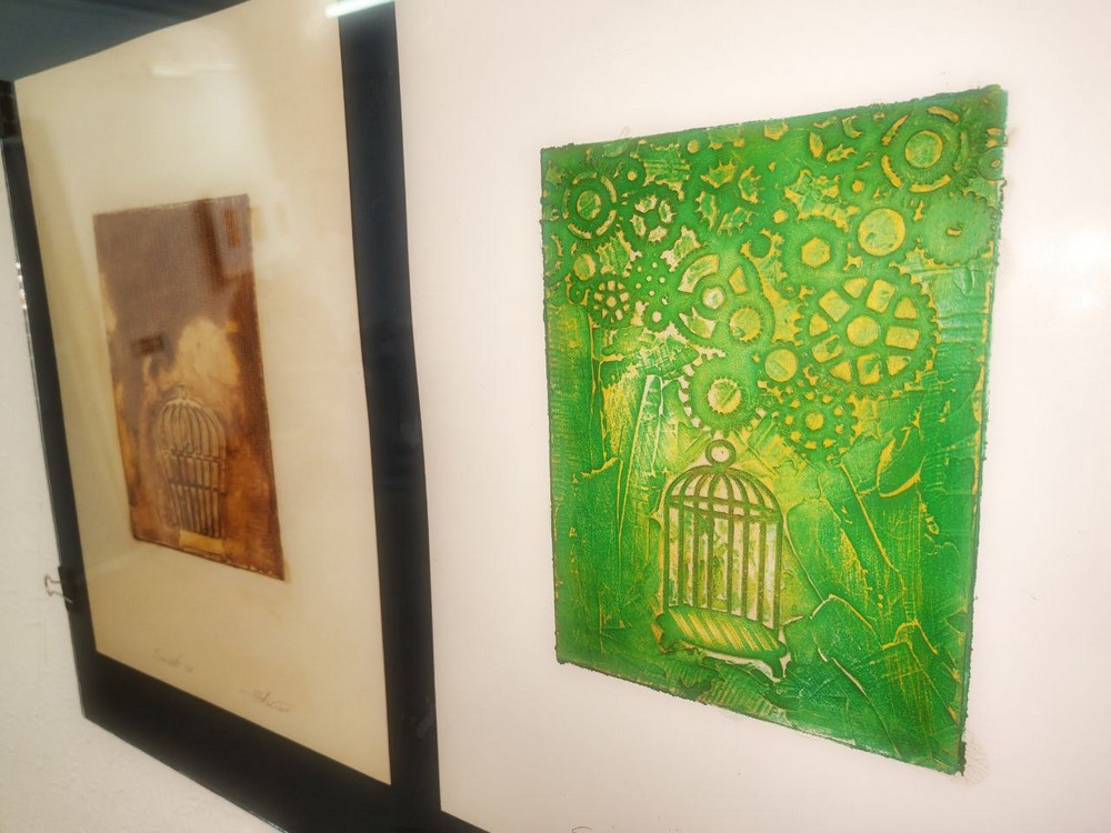 – Художник может использовать фактуру ткани, какие-то интересные узоры на ней или сетку, – объяснила Ольга Привалова. – Это могут быть и любые механизмы, в том числе разобранные часовые. Всё это при помощи трафарета наносится на основу. В итоге получается именно та графика, смотря на которую так и хочется поинтересоваться, как это было сделано. Понятно, что в основе классический способ печати, когда мы берём доску и на неё кладём бумагу, которая позволяет впитать краску, и прокатываем её через станок. Но в итоге получаем поразительное произведение искусства.