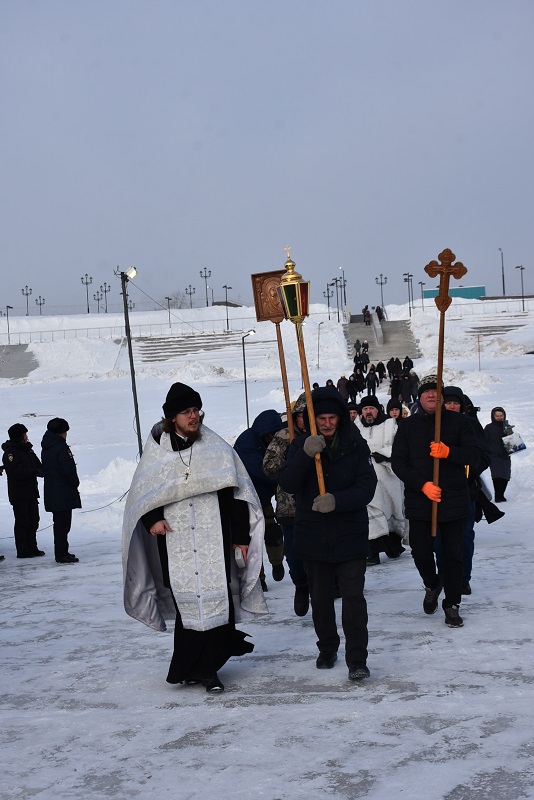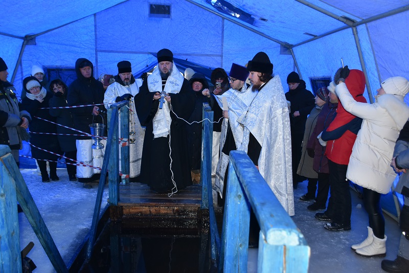 Ближе к полудню возле купели прошёл традиционный чин освящения воды. Епископ Амурский и Чегдомынский Николай поздравил всех с Крещением.