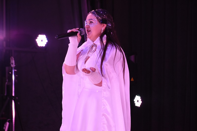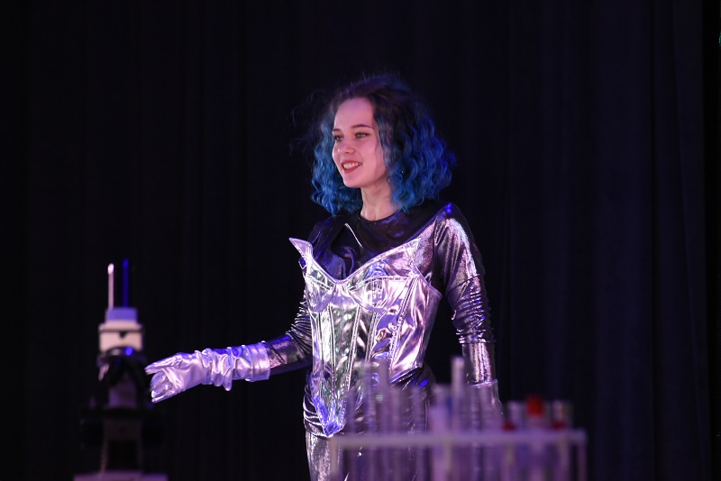 – Я решила создать образ Вселенной, – подчеркнула Ульяна Зыкова, второкурсница АмГПГУ. – На сцене мне уже приходилось выступать не раз, так как занимаюсь вокалом в студии «Голос» при университете. Для выступления выбрала нежный белый наряд с плащом, дополнила образ светящимися очками.