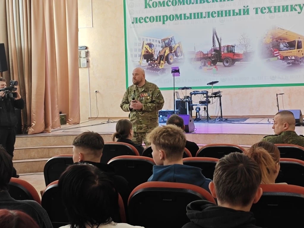 В состав делегации входил ансамбль песни и пляски Восточного военного округа, который за день дал пару концертов. А ещё ВВО отрядил в Комсомольск военного психолога в офицерском звании, который выступил в нескольких учреждениях с лекцией перед штатскими коллегами, социальными кураторами и вообще заинтересованными специалистами. Лекция была посвящена ПТСР (посттравматическому стрессовому расстройству), с которым люди возвращаются из зоны боевых действий, и тому, как родным, близким и должностным лицам следует себя вести в общении с вернувшимися. Офицер излагал такие интересные и актуальные вещи, что я заручился его согласием на публикацию материалов лекции в газете «ДВК»: это знание многим из нас ещё пригодится. В одном из ближайших выпусков эти материалы напечатаем.