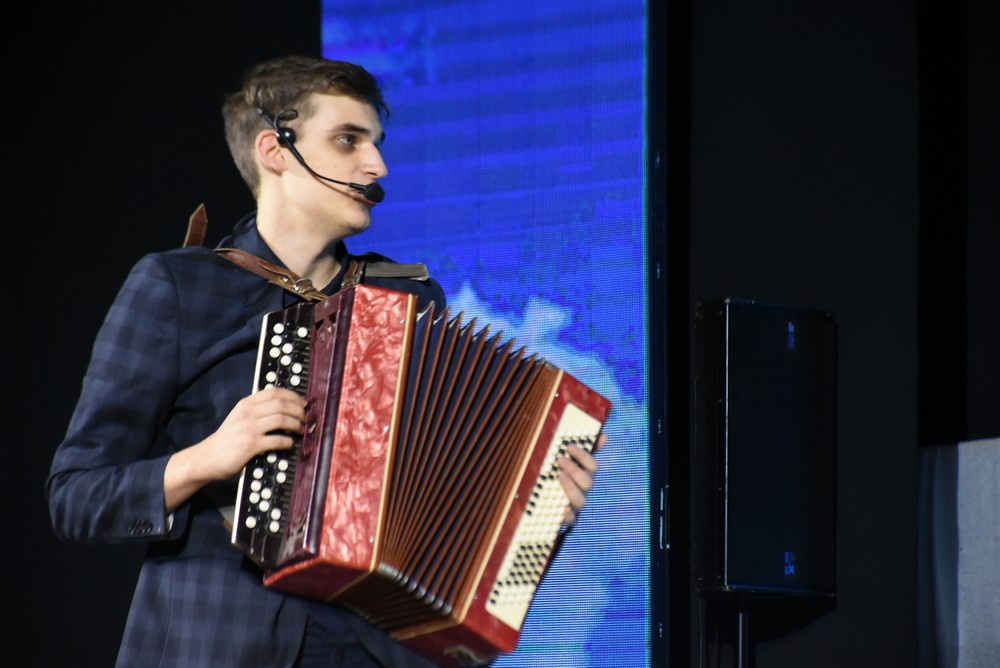 Специалист по материально-техническому снабжению Валентин Зеленко выступал на сцене вместе с коллегами. В завершении номера на сцену неожиданно посыпались лепестки роз. Участник встал на колено и сделал предложение одной из девушек. Как выяснилось, Валентин задействовал в творческом номере свою вторую половинку и очень волновался, чтобы та не разгадала его замысла.