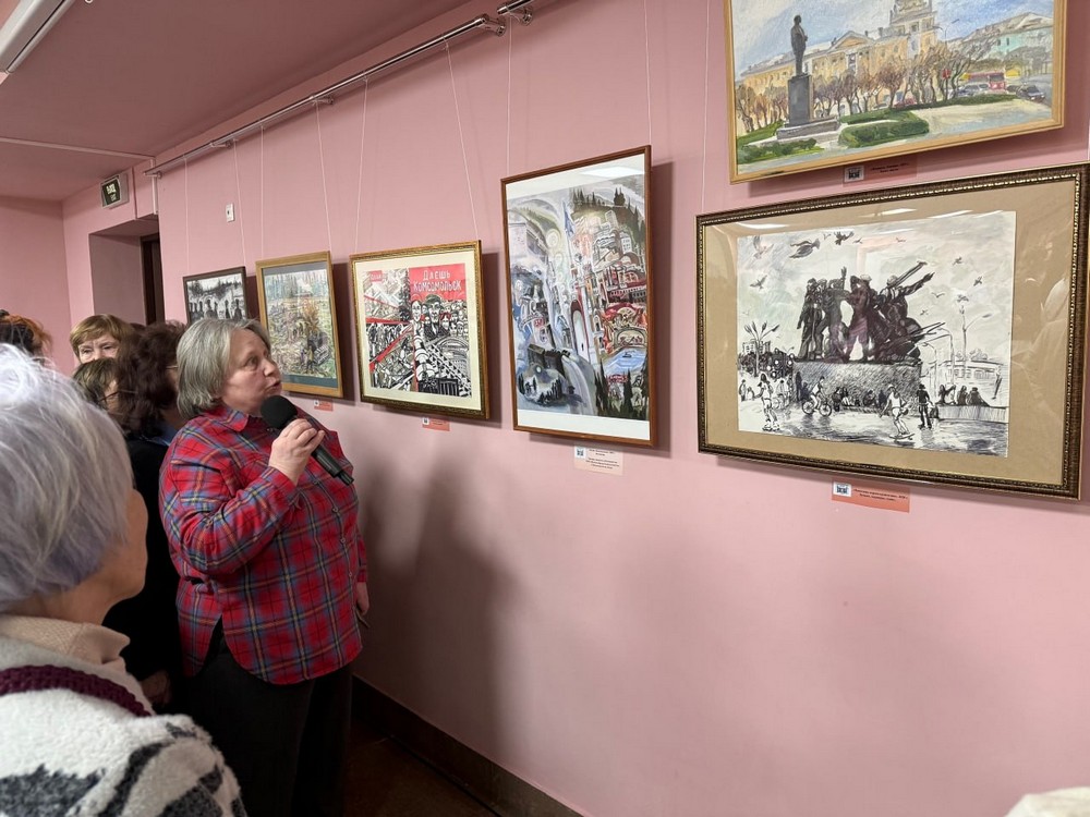 – Вот, например, работа «Коттеджи на Аллее Труда», – показывает Татьяна Кривцова. Я писала её, когда работала в 32-й школе, это был вид из окна. А вот здесь изображена арка на проспекте Ленина, 15. Я просто наблюдала за ремонтом, за тем, как меняется город, и так родилась эта картина. Есть работа «Пионерская», это реальная сцена. Мне хотелось показать, как город живёт сейчас, но в контексте его истории.