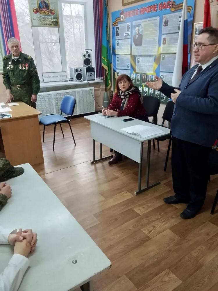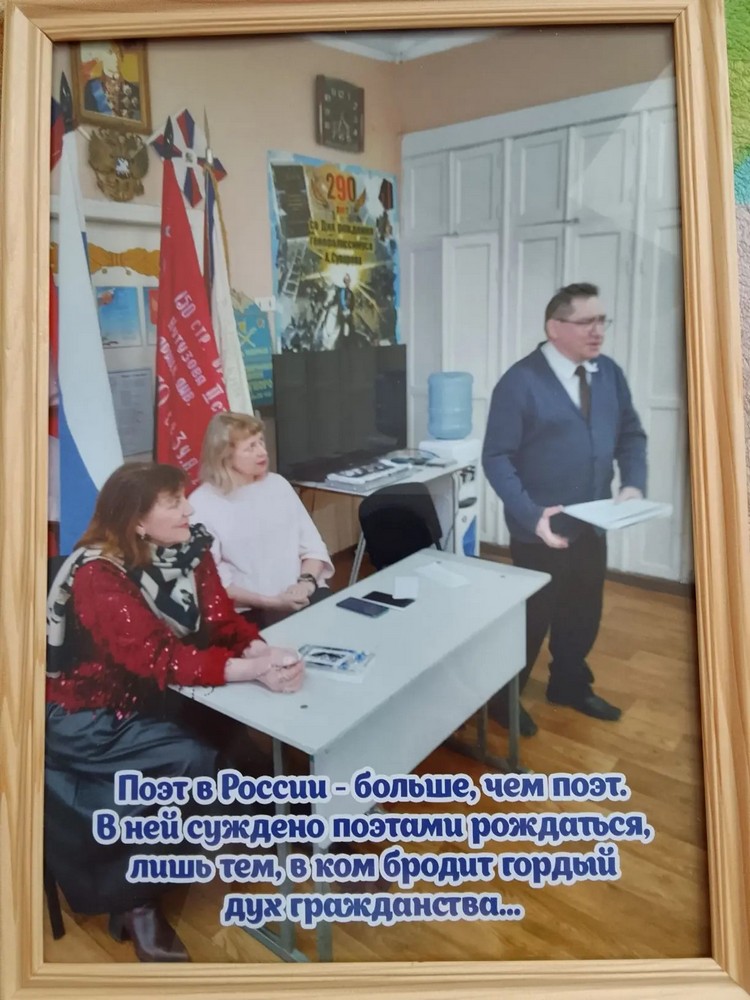 Я, в свою очередь, рассказал воспитанникам клуба о своём опыте военной службы, поделился сокровенными мыслями о воспитании и обучении молодёжи (я работаю учителем русского языка и литературы в МОУ гимназия № 1 им. Героя СССР Евгения Дикопольцева), а также прочёл свои произведения из философской и духовной лирики.