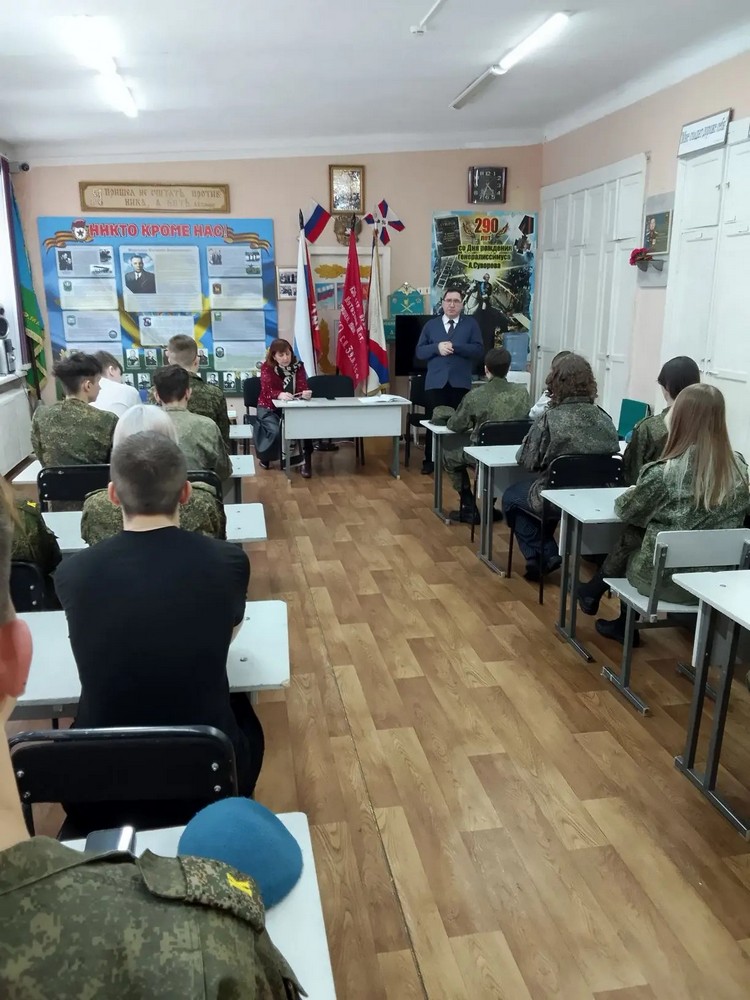Творческая встреча прошла 25 марта 2026 года в помещении Военно-технического клуба имени А.В. Суворова, расположенном по улице Комсомольской, 34/2. Курсанты встретили нас тепло и в то же время строго, по-военному. Ребята, одетые в полевую военную форму, стояли в соответствии со Строевым уставом ВС РФ, они дружно и чётко произнесли слова воинского приветствия, сразу задав мероприятию спокойный и деловой тон.