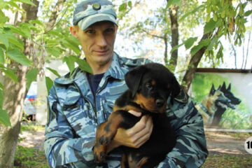 На кинологическую службу в Комсомольске-на-Амуре заступил двухмесячный щенок ротвейлера по кличке Ли. Пока под руководством кинолога Дмитрия Бобылёва он постигает...